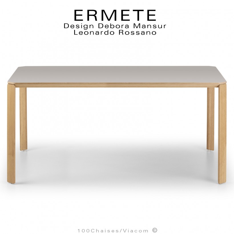 Grande table repas ou bureau rectangulaire ERMETE, quatre pieds en bois massif de Chêne vernis, plateau stratifié HPL unie.