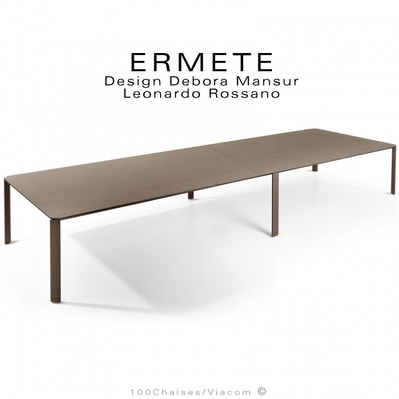 Grande table de réunion ou travail rectangulaire ERMETE, pieds bois massif de Chêne foncé, plateau placage chêne foncé.