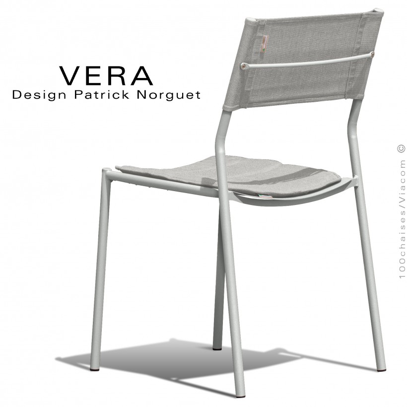 Chaise repas d'extérieur VERA, structure acier galvanisé peint blanc perle, dossier tissu technique Batyline gris Tourterelle.