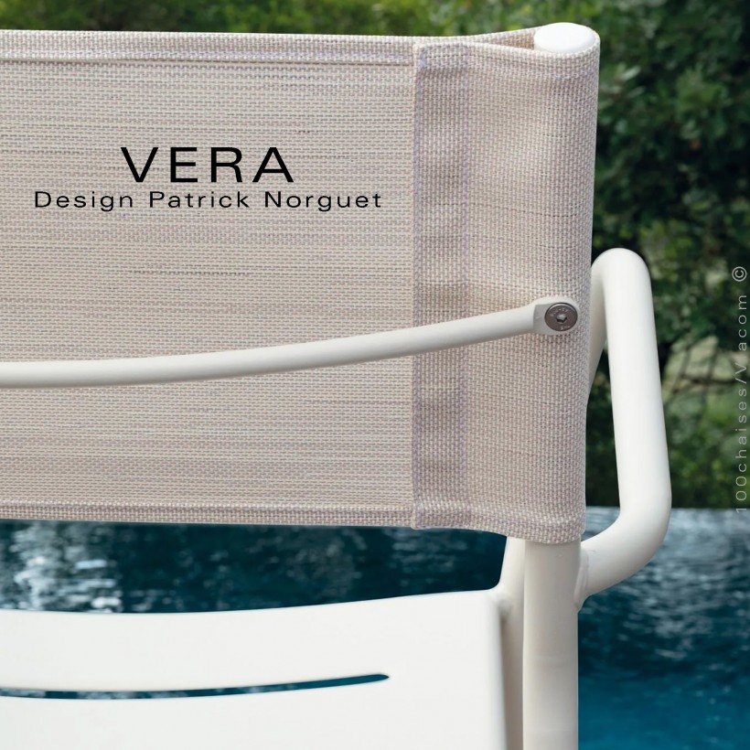 Chaise repas d'extérieur VERA, structure acier galvanisé peint blanc perle, dossier tissu technique Batyline gris Tourterelle.