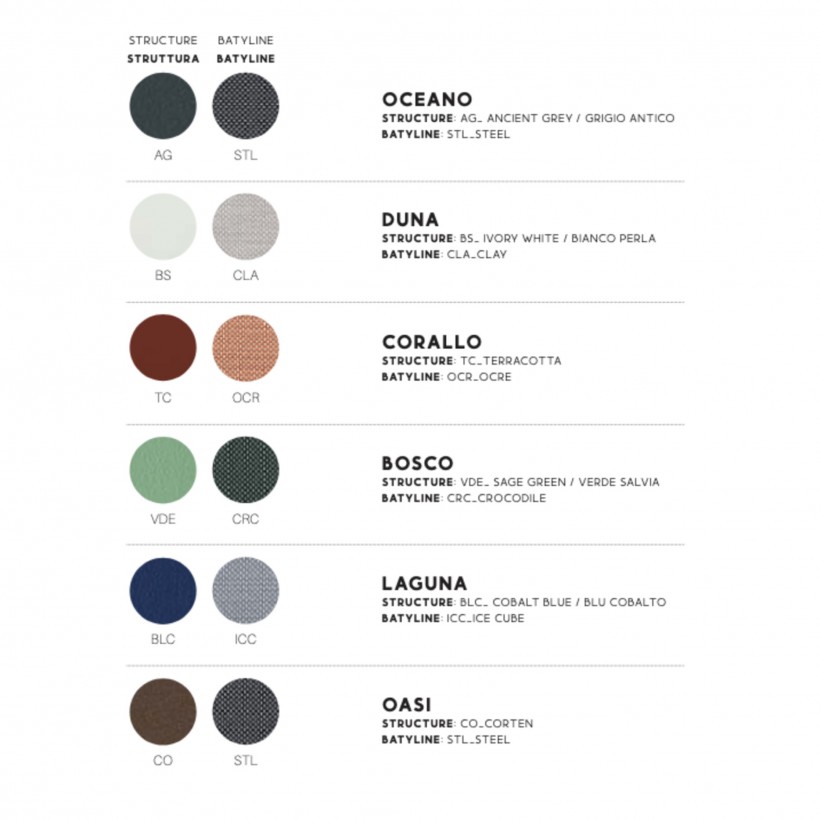 Palette combinaisons couleurs peintures et tissus Batyline possible.