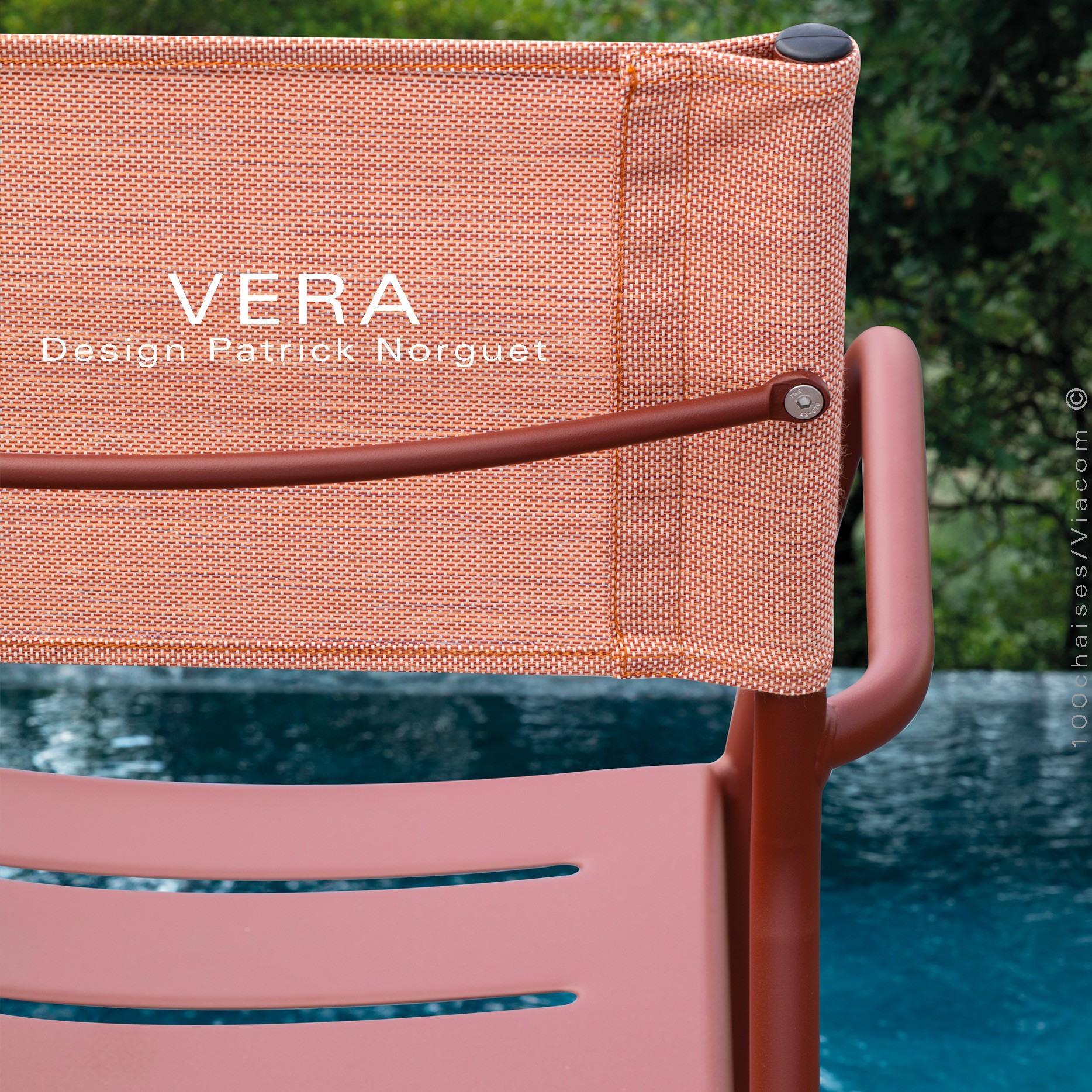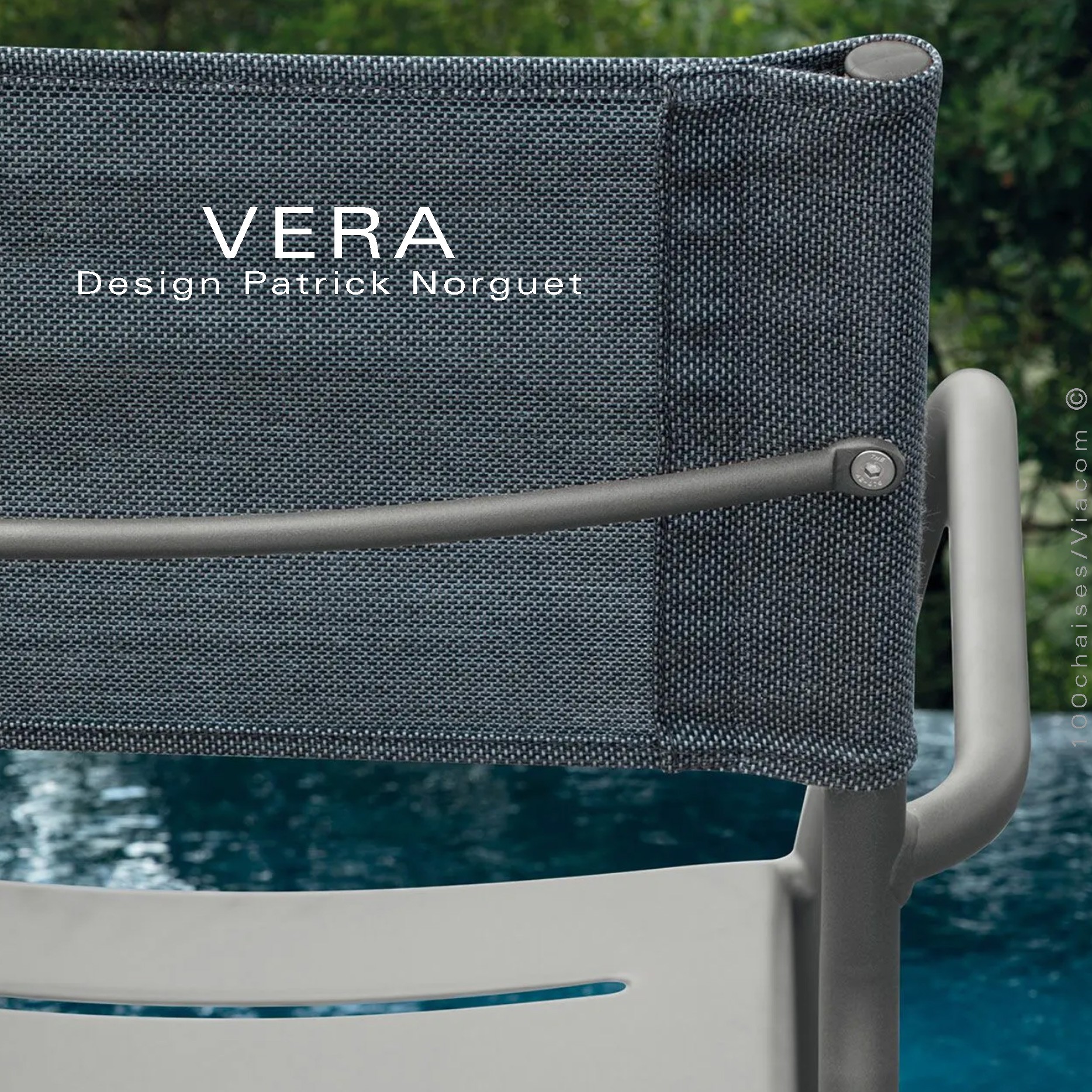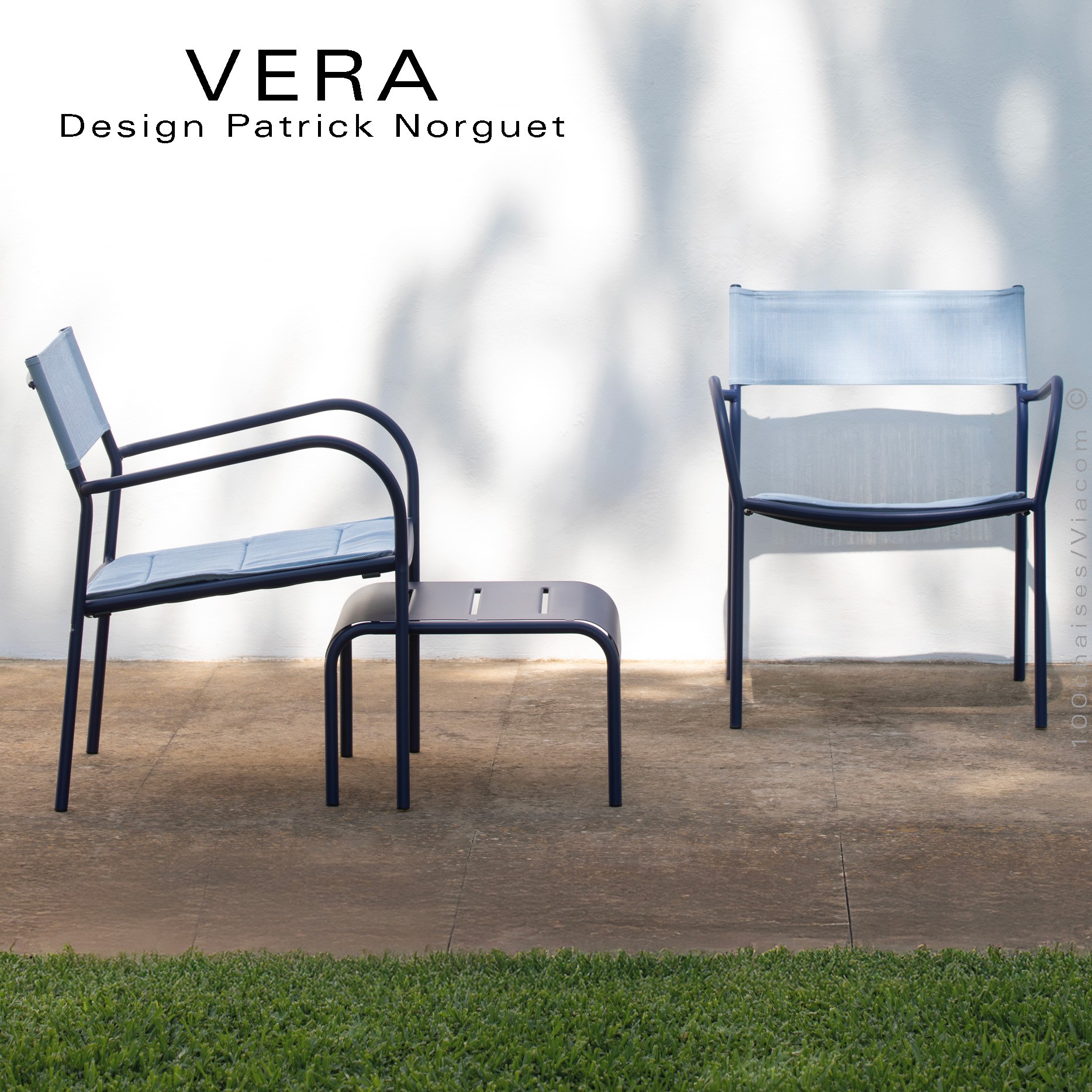 Fauteuil salon d'extérieur VERA, structure acier galvanisé peint, dossier tissu technique Batyline avec coussin.