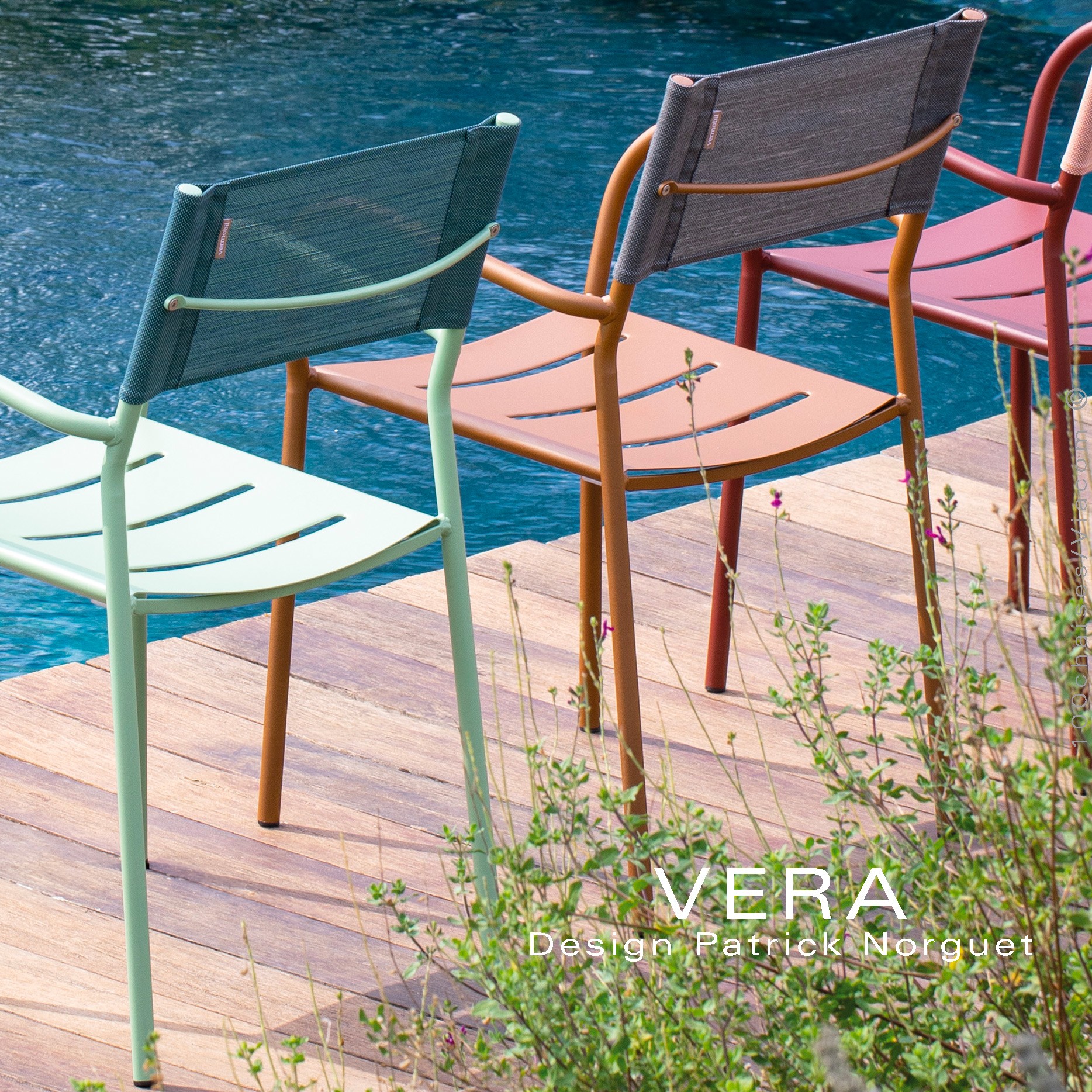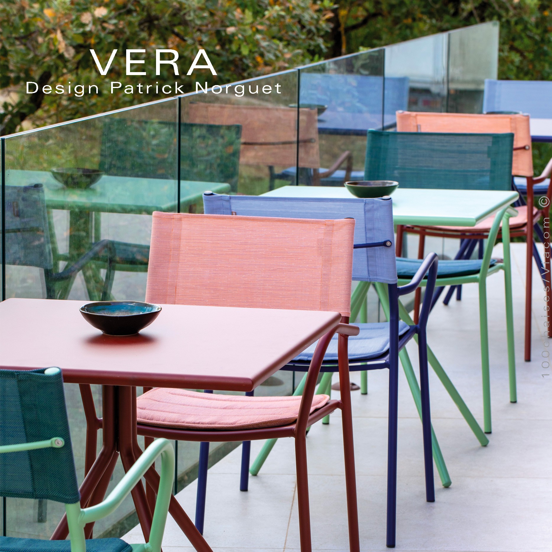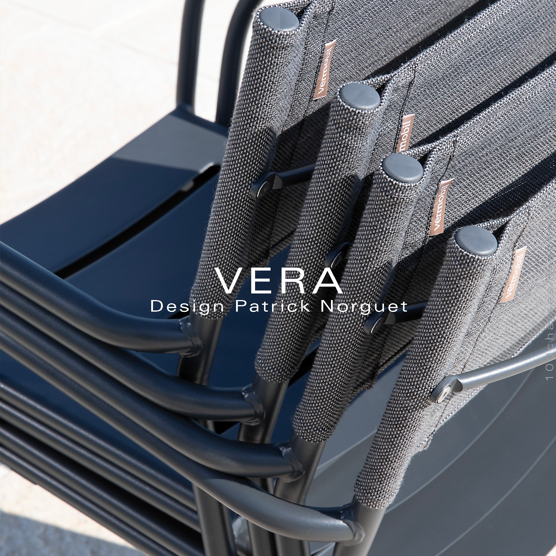 VERA est rehaussée par des combinaisons de couleurs vives dans les matériaux. Il est vraiment parfait pour tous les besoins en matière de sièges d'extérieur ! VERA est la solution idéale pour décorer les espaces extérieurs, que ce soit les terrasses de restaurants, les communautés ou les zones résidentielles privées. Son design polyvalent s'adapte à tout !
