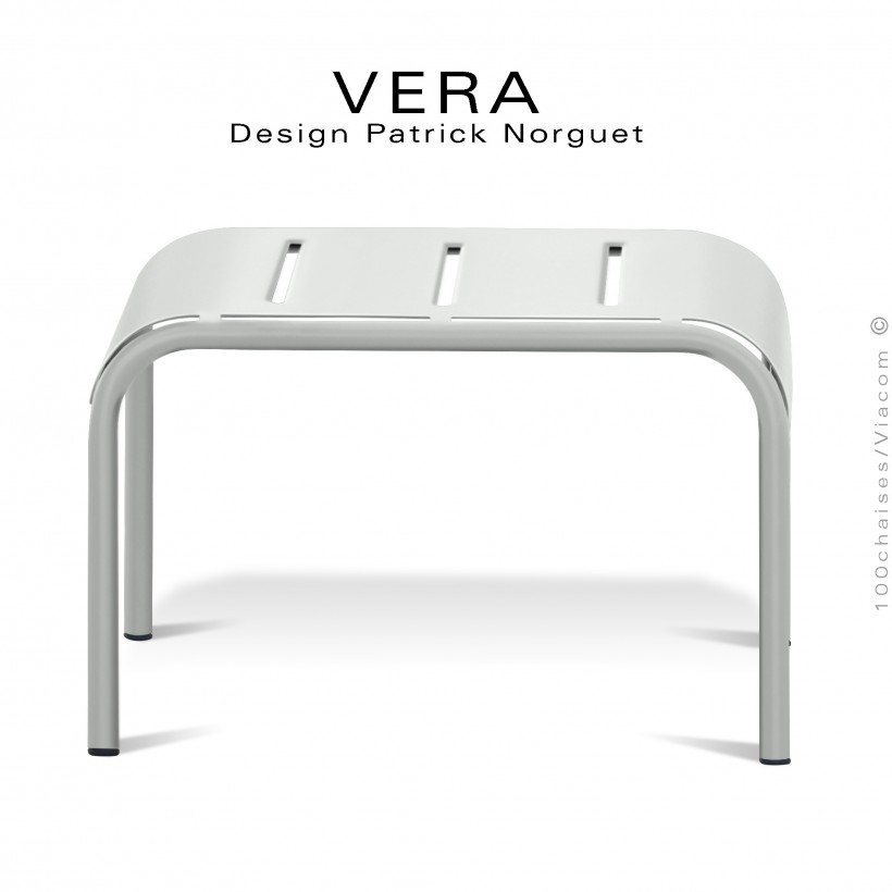 Repose-pieds ou petit tabouret pour fauteuil lounge d'extérieur VERA, conçue par le talentueux designer Patrick Norguet, il est un bijou d'ingénierie qui répond aux besoins du marché de l'outdoor avec une simplicité et une élégance époustouflantes. Son design épuré, est un véritable chef-d'œuvre. Ce tabouret ou repose pieds à la silhouette élégante et intemporelle, à la structure tubulaire, et son assise en métal perforé, pour en faire un meuble élégant.