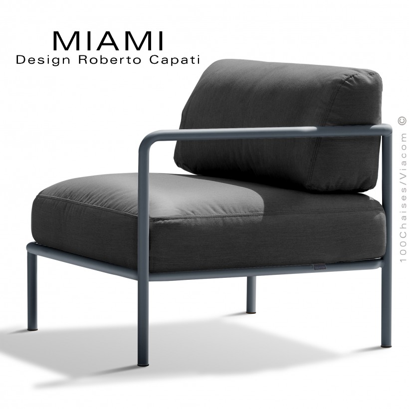 Fauteuil simple ou bout de banquette modulable droit MIAMI, structure galvanisée peinte, assise habillage tissu hydrofuge.