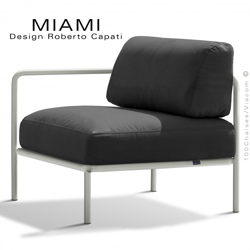 Fauteuil simple ou bout de banquette modulable gauche MIAMI, structure galvanisée peinte, assise habillage tissu hydrofuge.