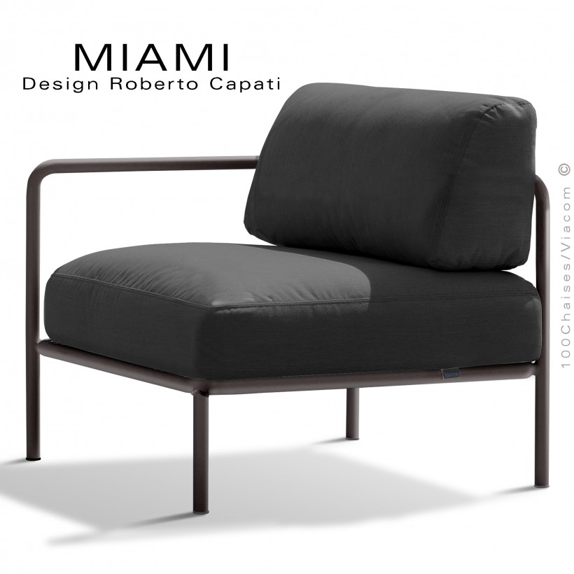 Fauteuil simple ou bout de banquette modulable gauche MIAMI, structure peinte bronze, assise tissu hydrofuge anthracite.