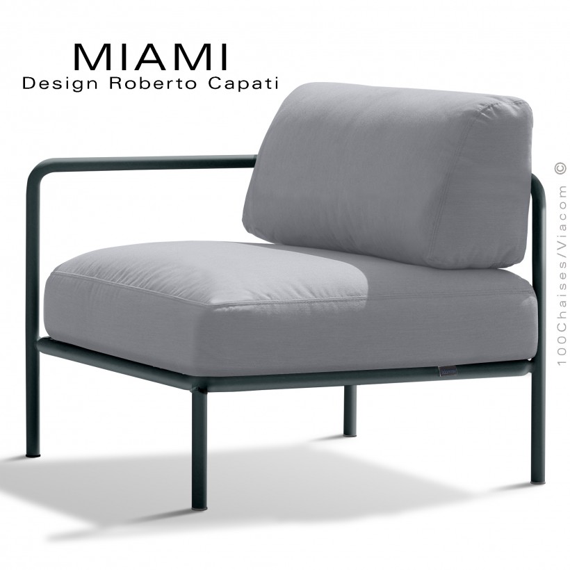 Fauteuil simple ou bout de banquette modulable gauche MIAMI, structure peinte anthracite, assise tissu hydrofuge argent.