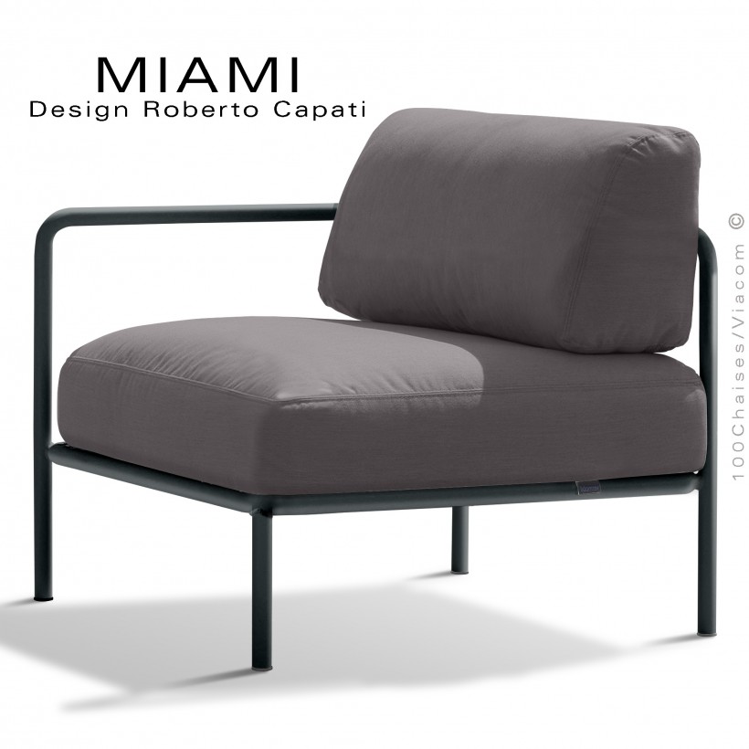 Fauteuil simple ou bout de banquette modulable gauche MIAMI, structure peinte anthracite, assise tissu hydrofuge taupe.