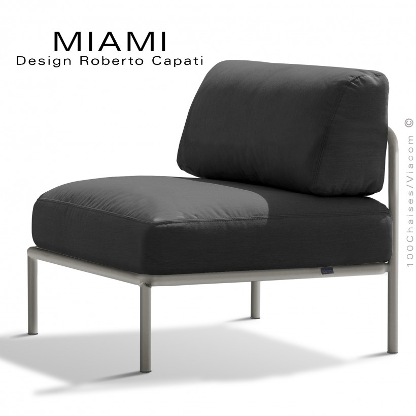 Module centrale pour banquette modulable MIAMI, structure peinte Tourterelle, assise tissu hydrofuge anthracite.