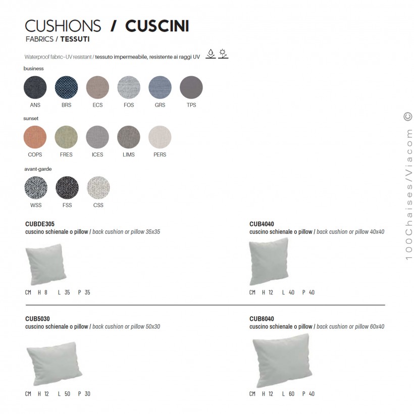 Palette peinture standard pour structure assise gamme extérieur Miami, fauteuil, pouf, canapé, modulable.