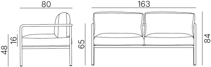 Banquette deux places pour extérieur MIAMI, structure acier galvanisée peinte, assise avec coussin, habillage tissu hydrofuge.