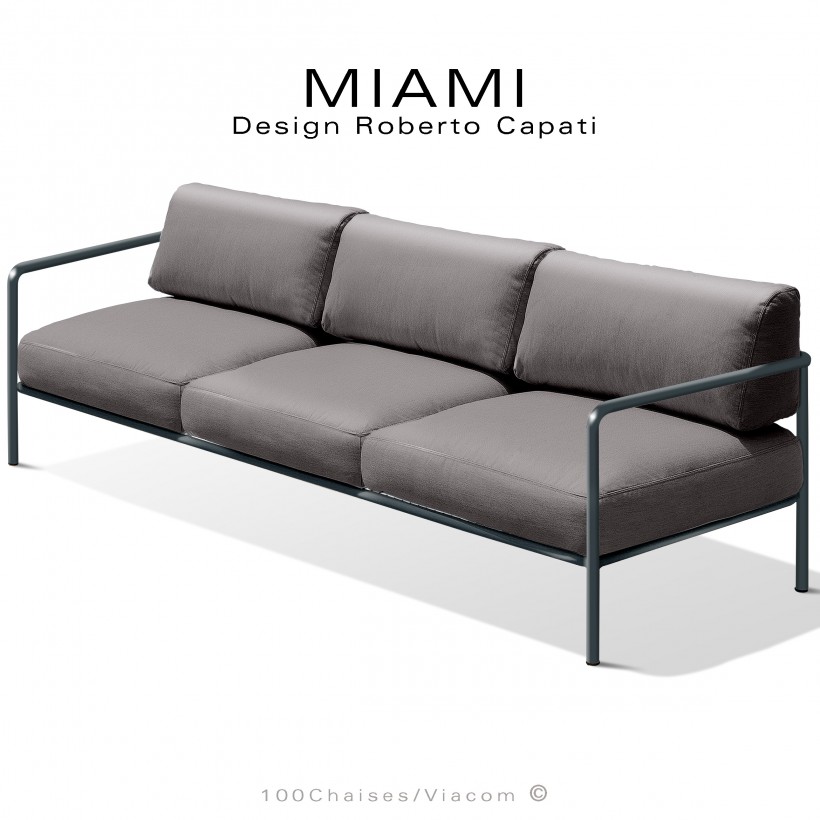 Banquette trois places lounge pour extérieur MIAMI est le choix idéal pour ceux qui souhaitent aménager leurs espaces extérieurs avec style, confort et qualité sans compromis. Avec un design simple et moderne, ce canapé confort trois places est idéal pour les jardins, les terrasses et les vérandas, mais aussi pour les environnements contractuels tels que les hôtels, les restaurants et les centres de villégiature. Fabriqué à partir de matériaux de haute qualité et disponible dans une large gamme de couleurs, la banquette lounge MIAMI est synonyme de durabilité et de polyvalence, transformant tout espace extérieur en une oasis de détente et de classe.