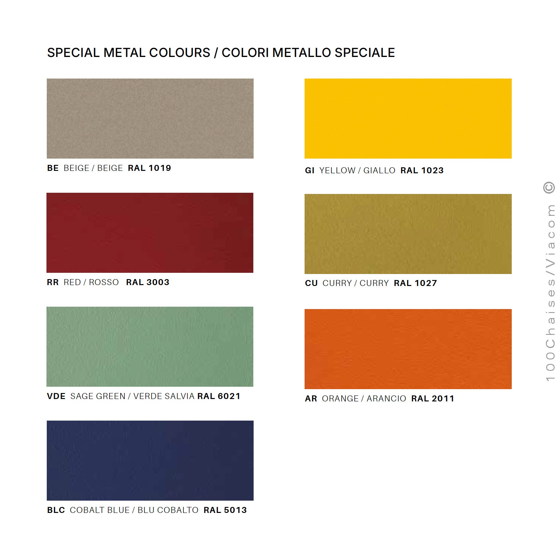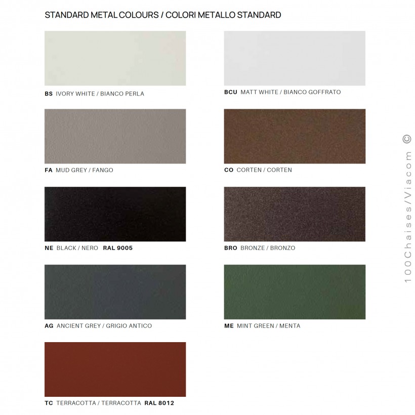 Palette finition peinture poudre pour extérieur, gamme mobilier salon lounge Néa de Vermobil.