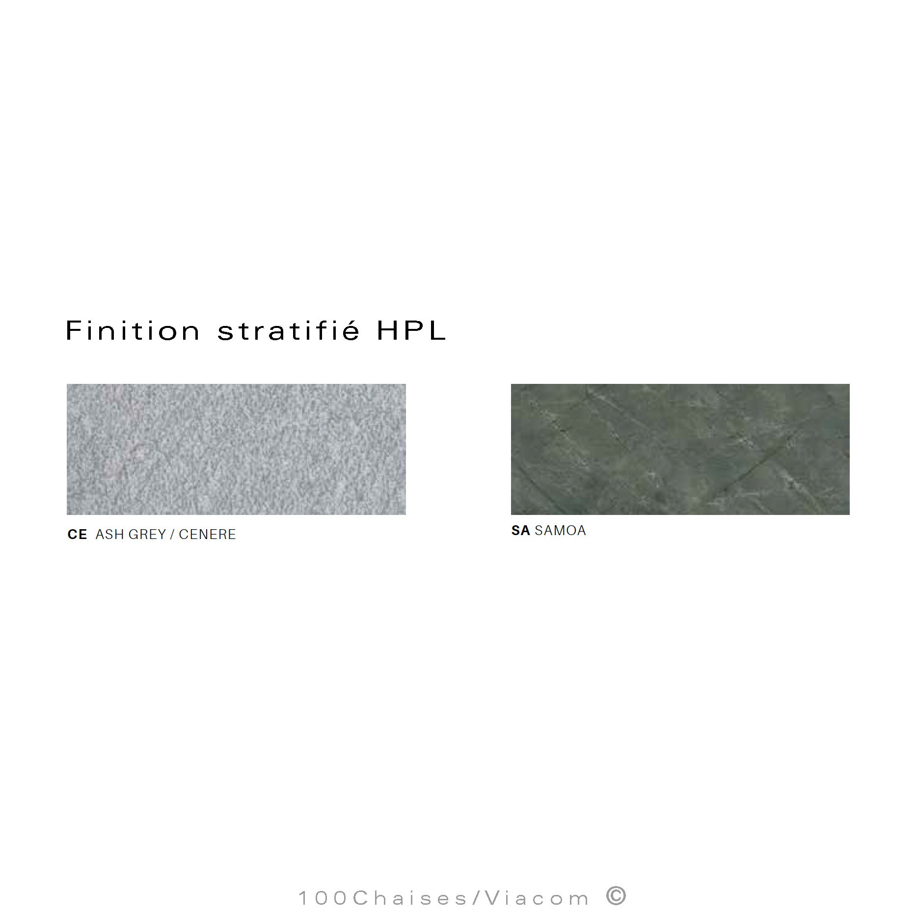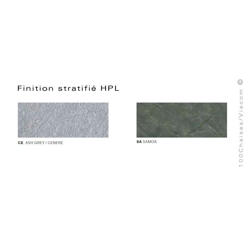 Palette couleur finition plateau compact stratifié HPL pour plateau d'extérieur gamme de salon de jardin lounge Néa.
