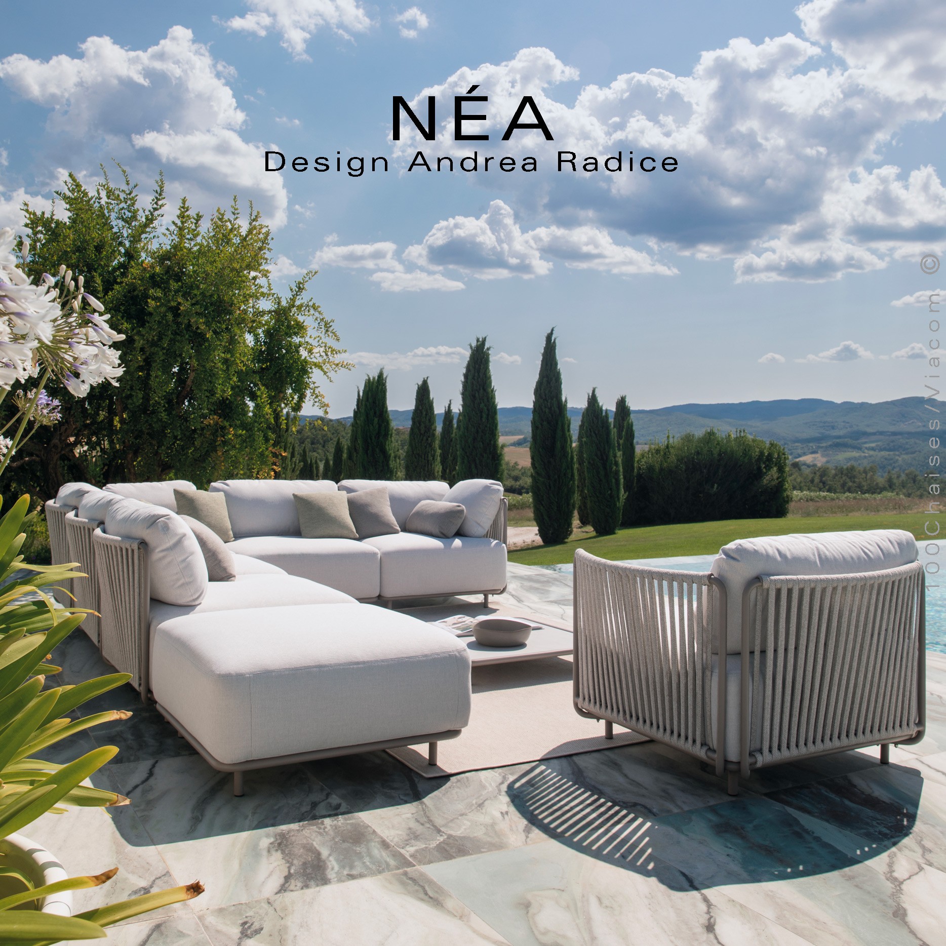 La collection NÉA incarne une vision contemporaine du salon de jardin, où chaque détail est pensé pour sublimer les espaces extérieurs les plus exigeants. Véritable invitation à l’élégance et à la liberté, elle se compose d’éléments modulables — fauteuil, pouf, module central et modules latéraux avec accoudoirs — permettant de créer des configurations uniques, parfaitement adaptées à chaque lieu.