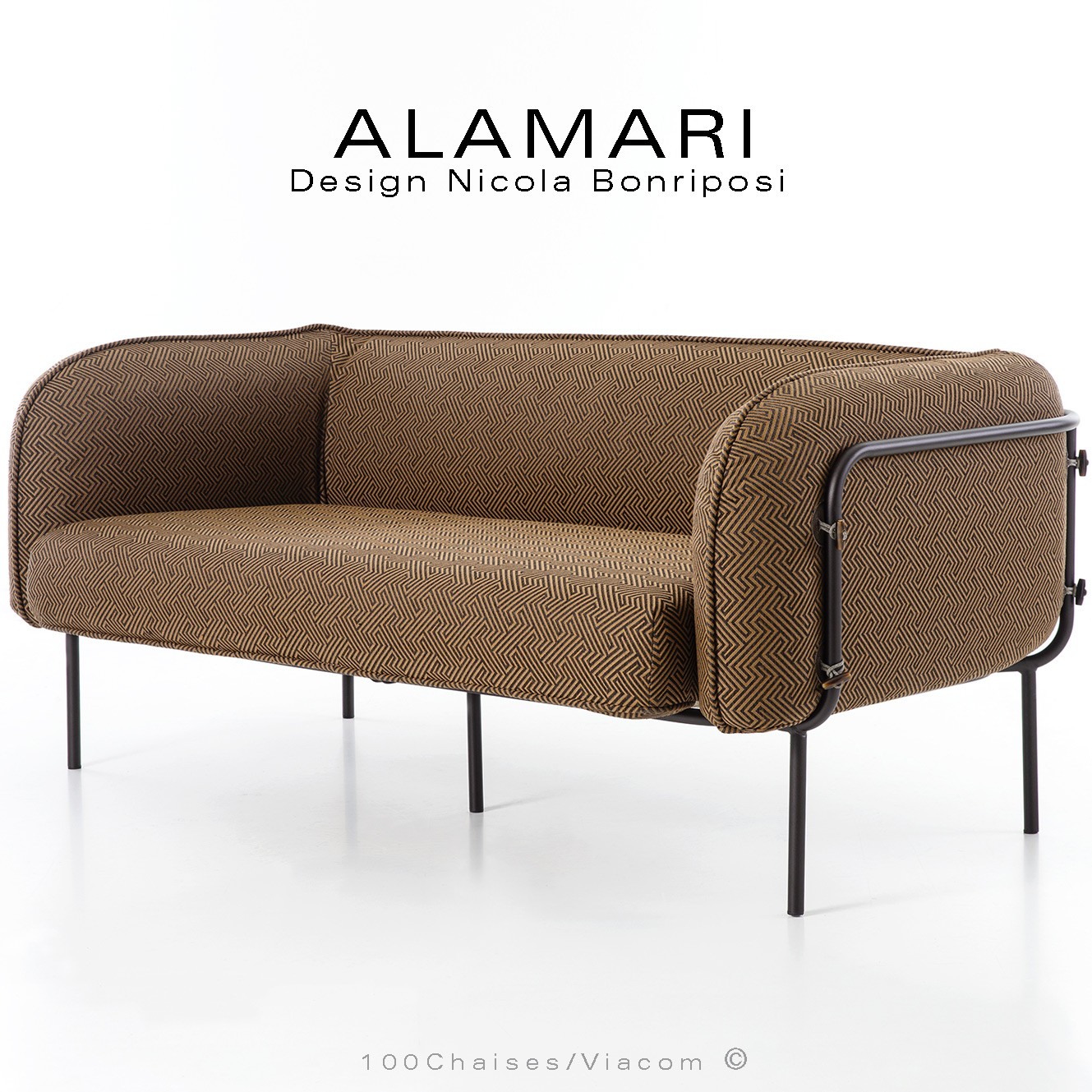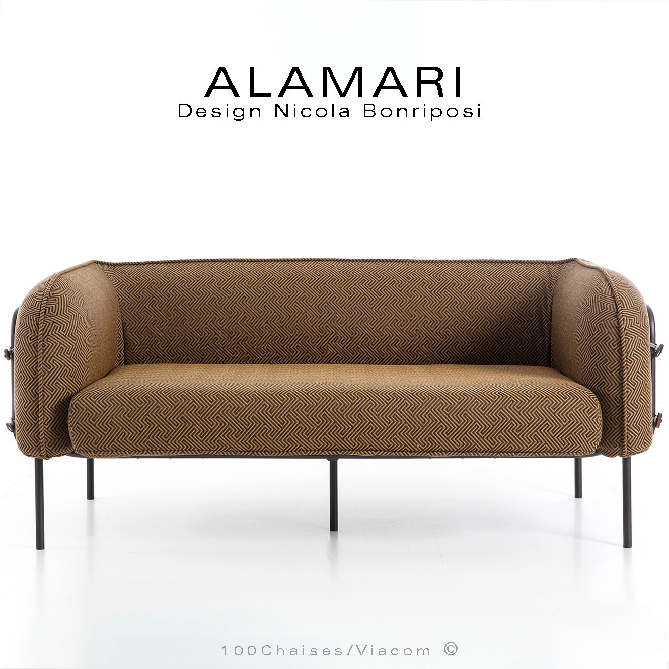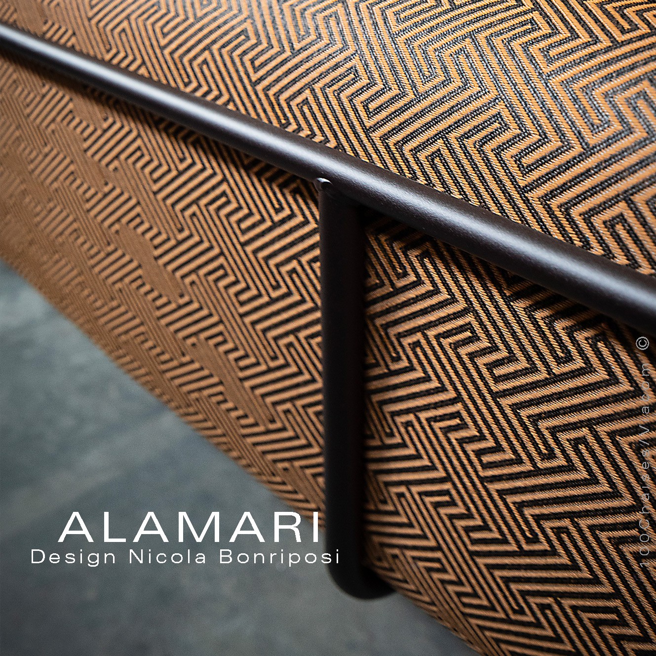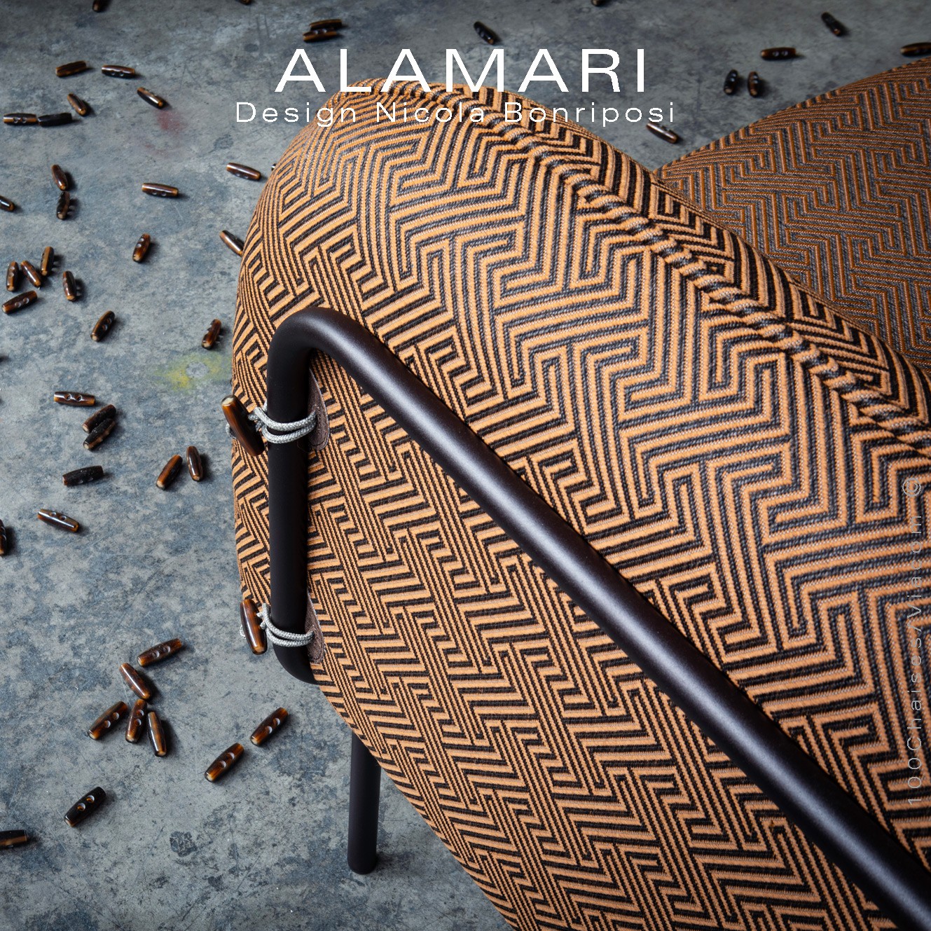 Salon d'extérieur pour jardin ou fauteuil large lounge ALAMARI, structure tube d'acier 30 mm., avec tampons plastique de protection des sols. Finition structure, peint avec des poudres polyester thermodurcissables Qualicoat de classe 1 et 2., couleurs standard bronze ou blanc perle (autre sur commande et devis voir palette fabricant). Assise avec ceinture élastique, coussins inclus assise et dossier enduits à l'intérieur d'une couche de PVC, ce qui le rend imperméable, tout en laissant respirer la mousse polyuréthane haute densité intérieur, afin de lutter contre la formation de moisissures. Option possible coussin supplémentaire (sur demande à commandes@100chaises.fr).