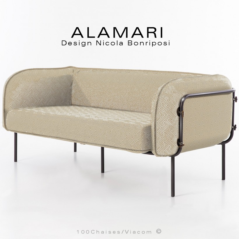 Canapé large lounge ou salon de jardin ALAMARI, structure acier peint, coussin habillage tissu déperlant.