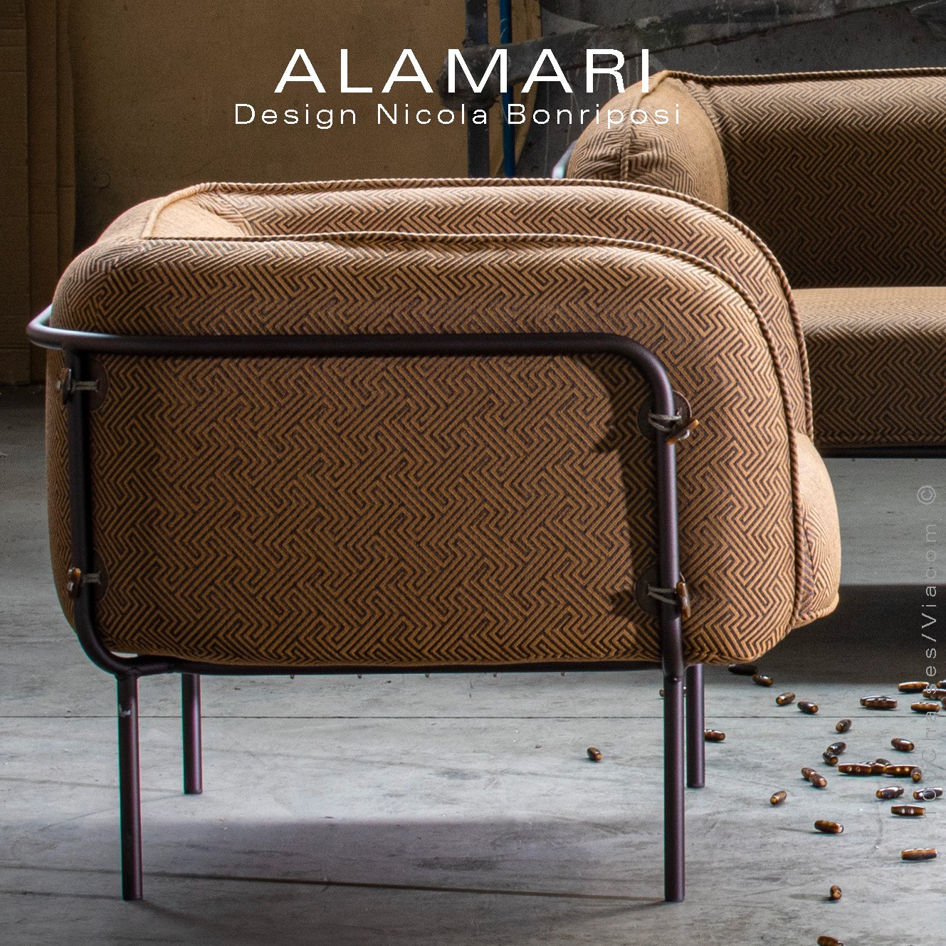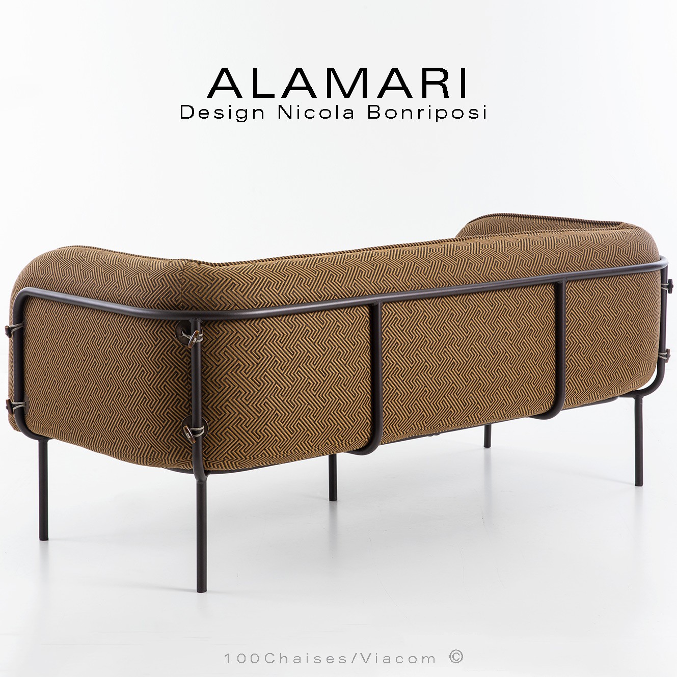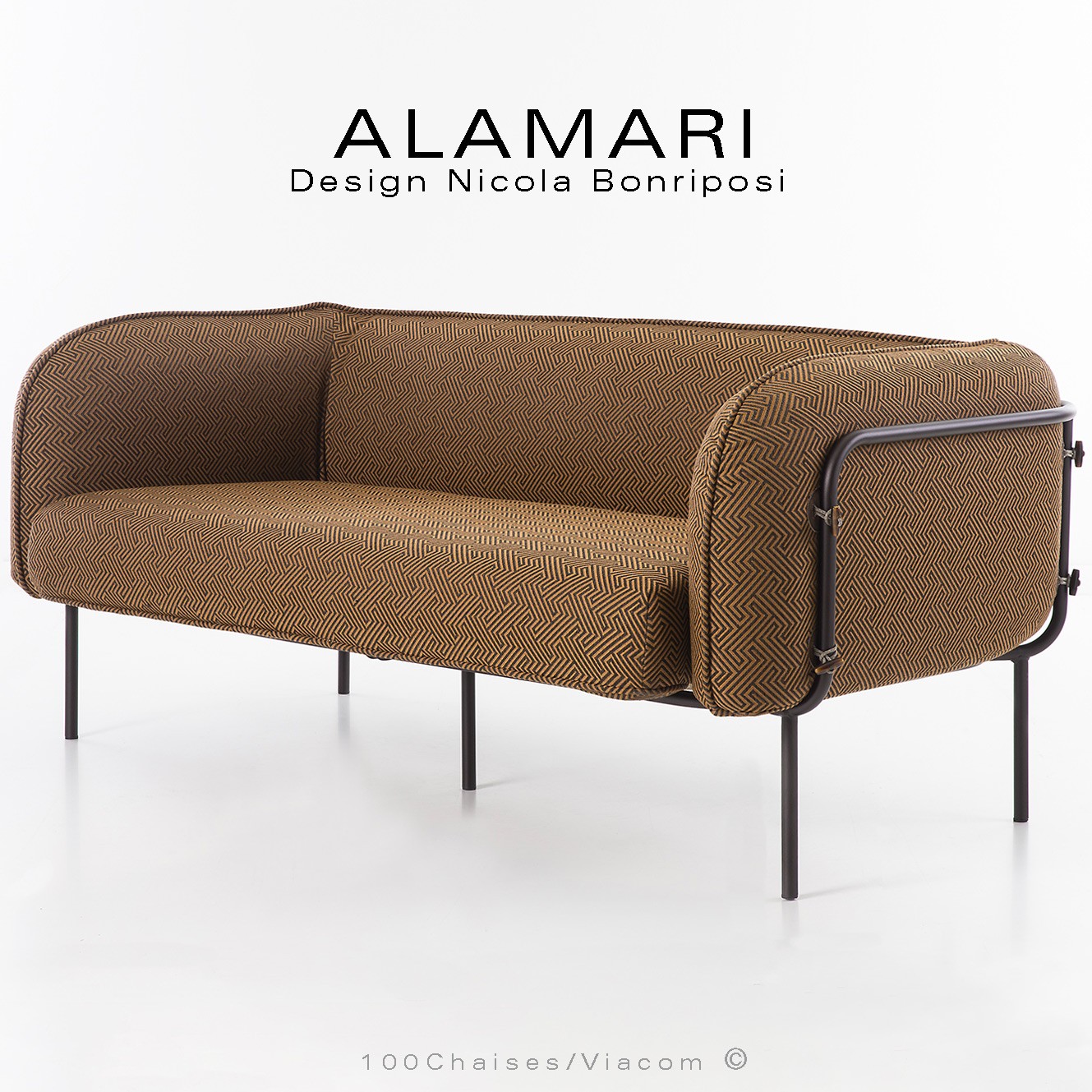 Canapé large lounge ou salon de jardin ALAMARI, structure acier peint, coussin habillage tissu déperlant.