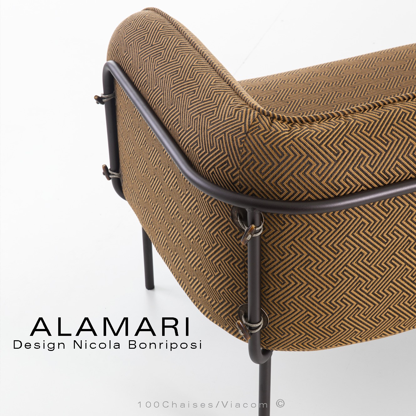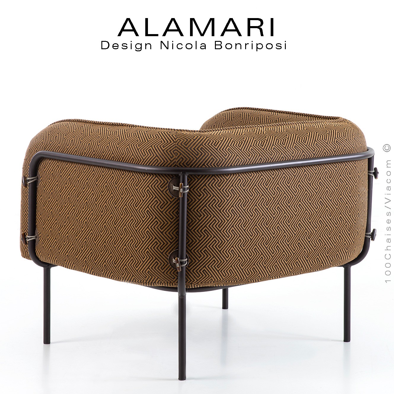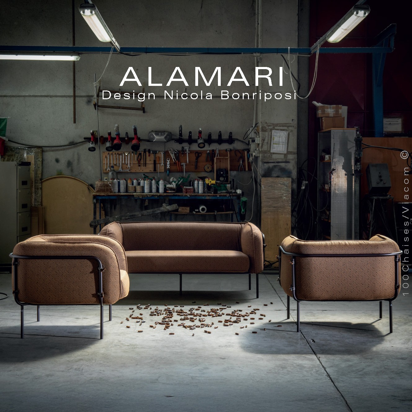 Canapé large lounge ou salon de jardin ALAMARI, structure acier peint, coussin habillage tissu déperlant.