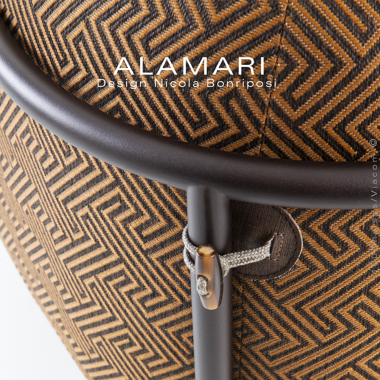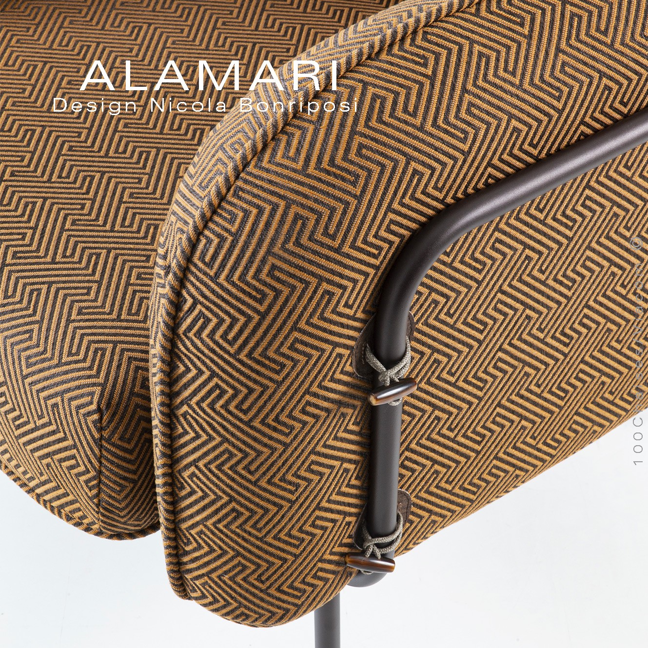 Le salon de jardin devient un espace fluide, parfois onirique, qui s'intègre parfaitement à tout environnement. Une collection au goût du jour, où l'imbrication de formes géométriques de base et de lignes essentielles crée une atmosphère dynamique et fonctionnelle. ALAMARI est une collection de deux sièges fauteuil lounge et canapé deux places qui se distinguent par leurs lignes douces et sinueuses. Le fauteuil, aux formes séduisantes et au design contemporain, s'habille de tissus résistants aux agents atmosphériques, lui permettant d'être utilisé en d'extérieur. Une collection aux lignes douces et enveloppantes, qui procurent une sensation de bien-être et de détente rien qu'en le regardant. Un accessoire d'ameublement idéal pour donner une touche d'élégance à votre espace extérieur.