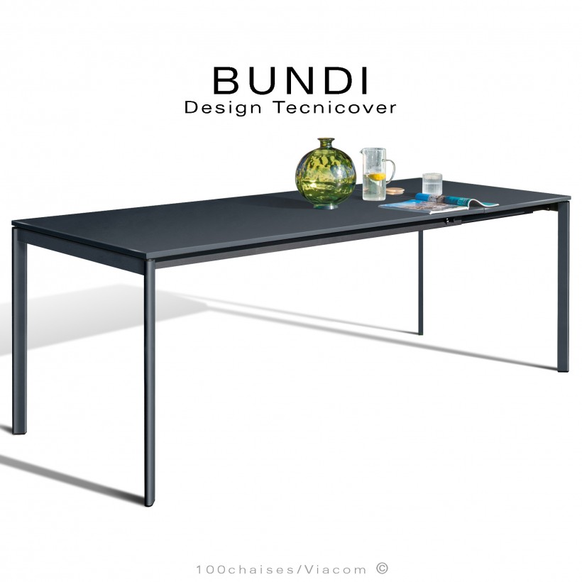 Table repas outdoor BUNDI, structure en acier galvanisé peint anthracite, 4 pieds avec plateau et rallonge amovible.