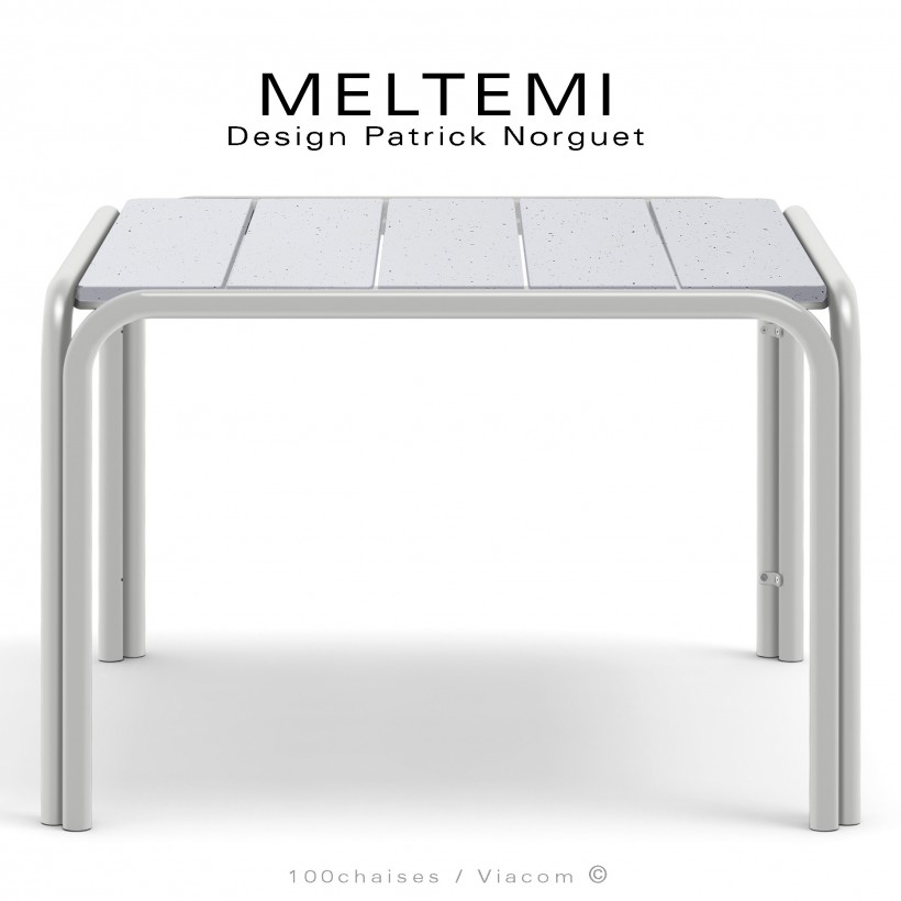 Table de jardin carré en aluminium – Plateau lamelles émaillées ou grès cérame – MELTEMI.