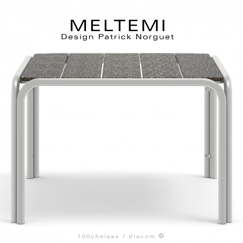 Table de jardin carré en aluminium – Plateau lamelles émaillées ou grès cérame – MELTEMI.