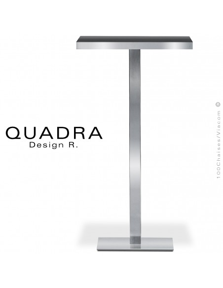 Normes européennesTable haute carrée ou mange-debout pour café, snack, bistrot QUADRA, piétement platine de sol carré 400x400 mm., colonne centrale tube d'acier carré 80x80 mm. Finition piétement inox brossé, inox poli ou chromé brillant. Avec tampons plastique de protection des sols. Plateaux type Aggloméré, épaisseur 22 mm., avec inserts négatifs pour simplifier le montage. Finition plateau plaquage stratifié couleur unie ou aspect bois et matière (voir palettes échantillons stratifié - autre finition possible sur demande à commandes@100chaises.fr - réponse sous 24h.). Bord ou chant plateau épaisseur 44 mm. (autres épaisseurs 52 ou 57 mm.), finition ABS inox ou chromé brillant en accord avec choix piétement. Dimensions plateau : 600x600, 700x700, 800x800 mm., Livraison piétement monté, plateau démonté.