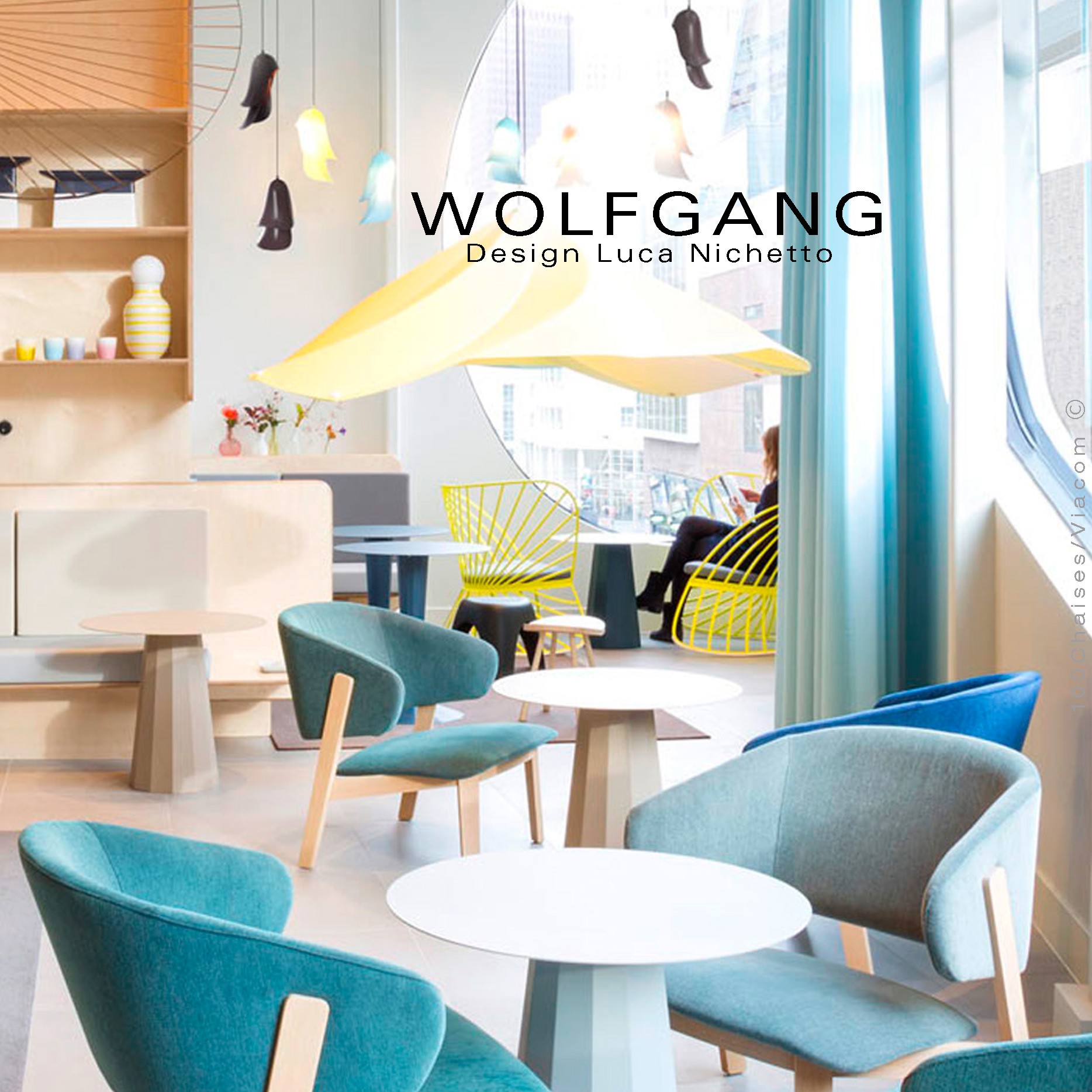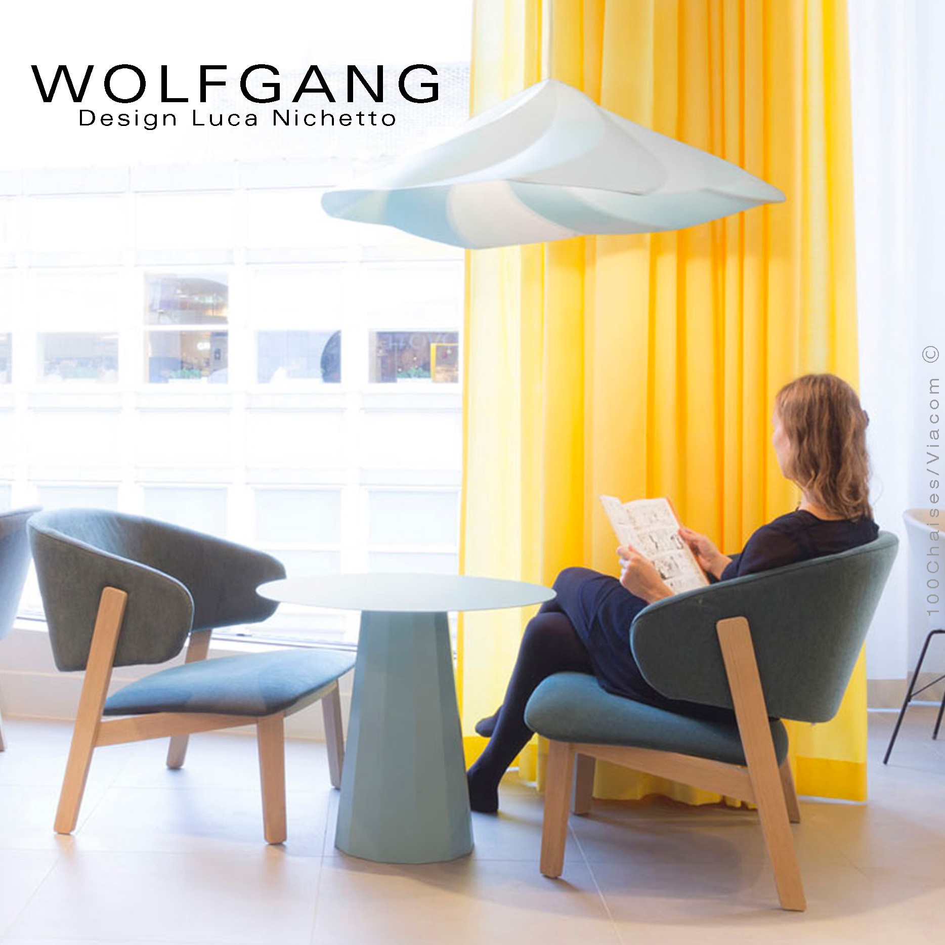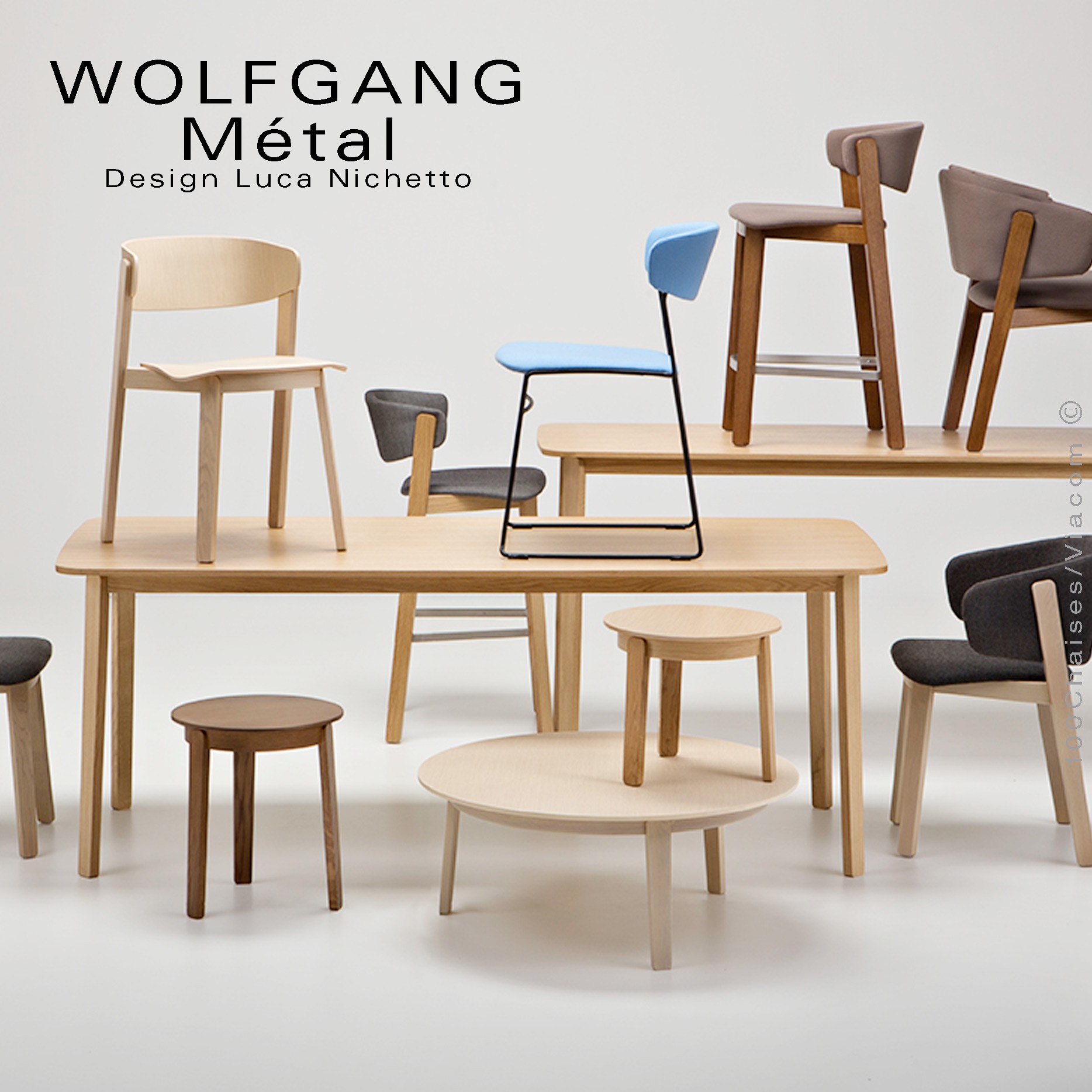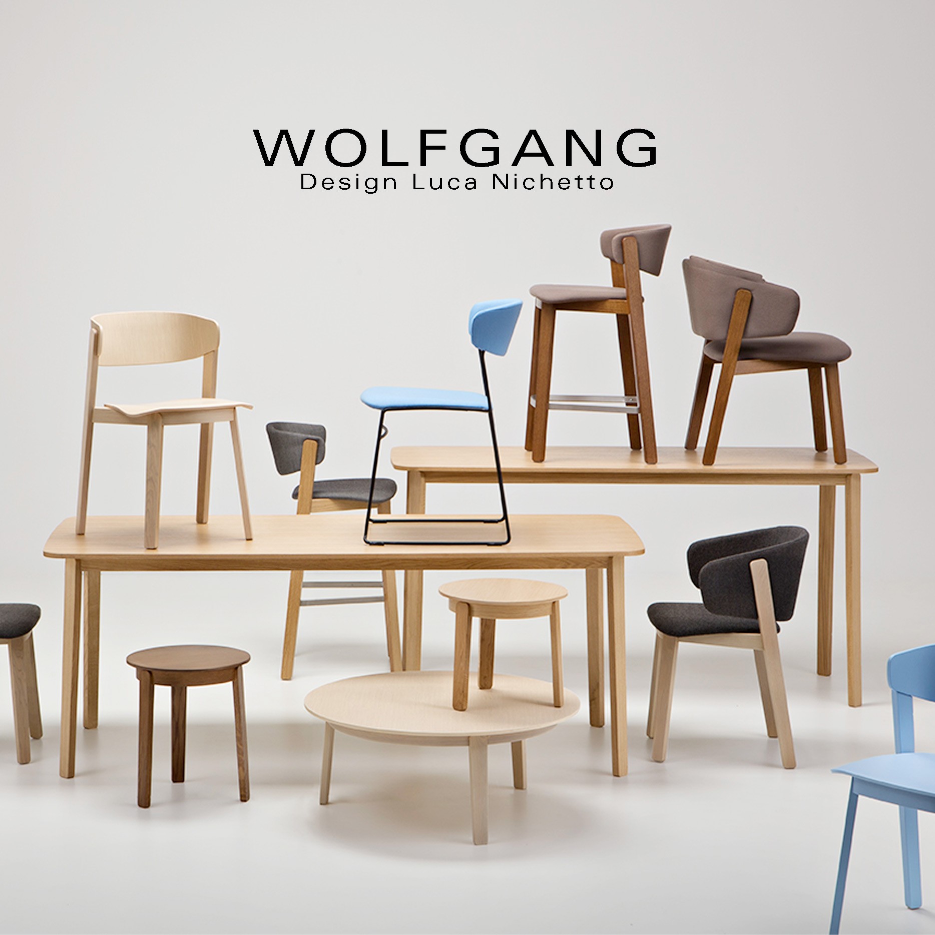 Wolfgang : une collection de chaise, fauteuil lounge, table d'appoint… Le designer vénitien, Luca Nichetto possède également une agence à Stockholm où il partage ses locaux avec le studio Wolfgang. Fruit de leur collaboration, la chaise Wolfgang. Avec son assise et son dossier en bois cintré, elle réinterprète le style scandinave et s’inspire des chaises conçues par Hans J. Wegner & Michael Thonet. Wolfgang est présentée comme une famille de chaises en naturel, partiellement ou totalement peint. Tous les modèles sont également disponibles dans la version rembourrée (garnie de mousse polyuréthane). Il est également prévu l’évolution de la famille avec une version lounge de la chaise et une table qui sera présentée en deux hauteurs. La chaise Wolfgang est le premier projet entièrement conçu dans le nouveau studio de Stockholm de designers et est un hommage à la "vie scandinave".