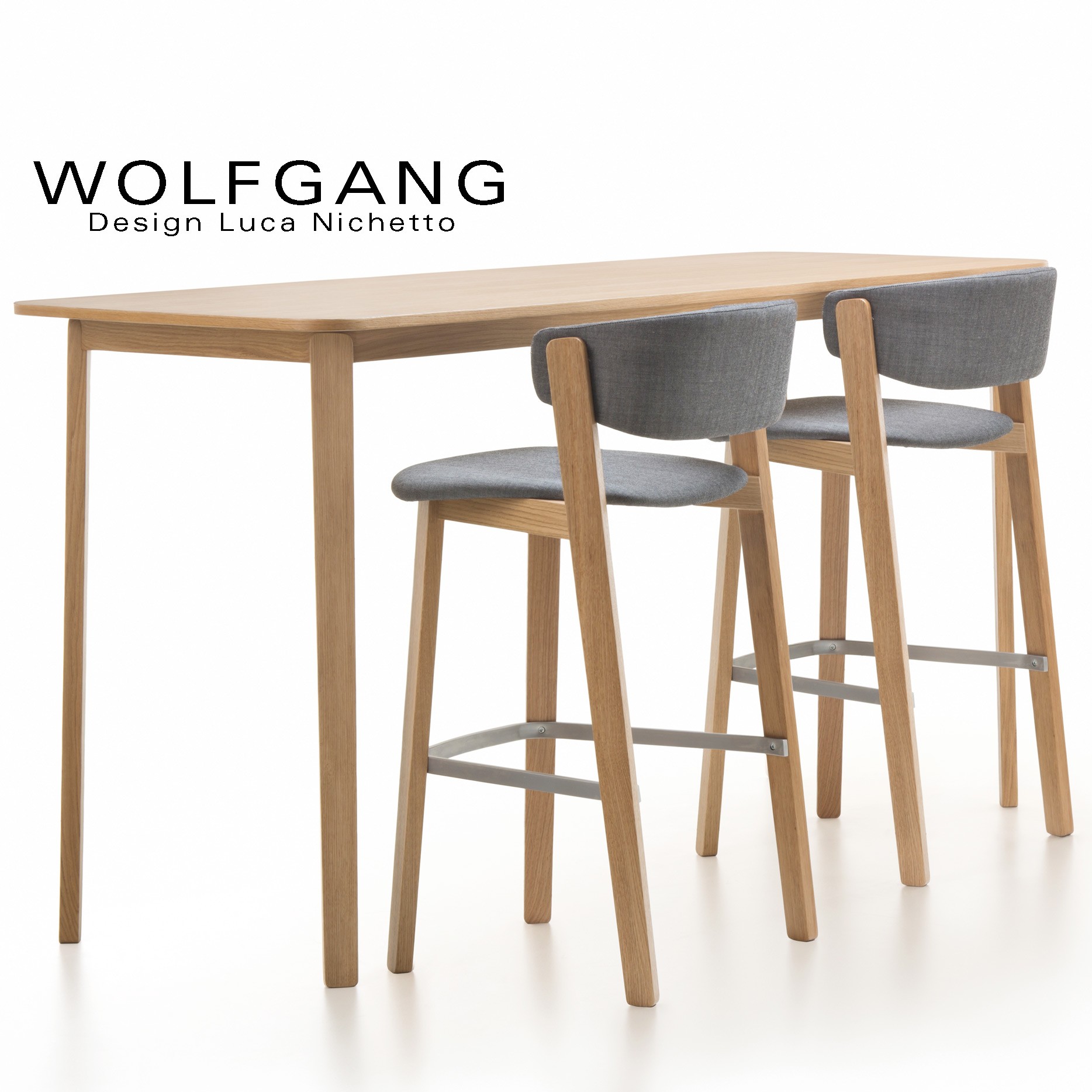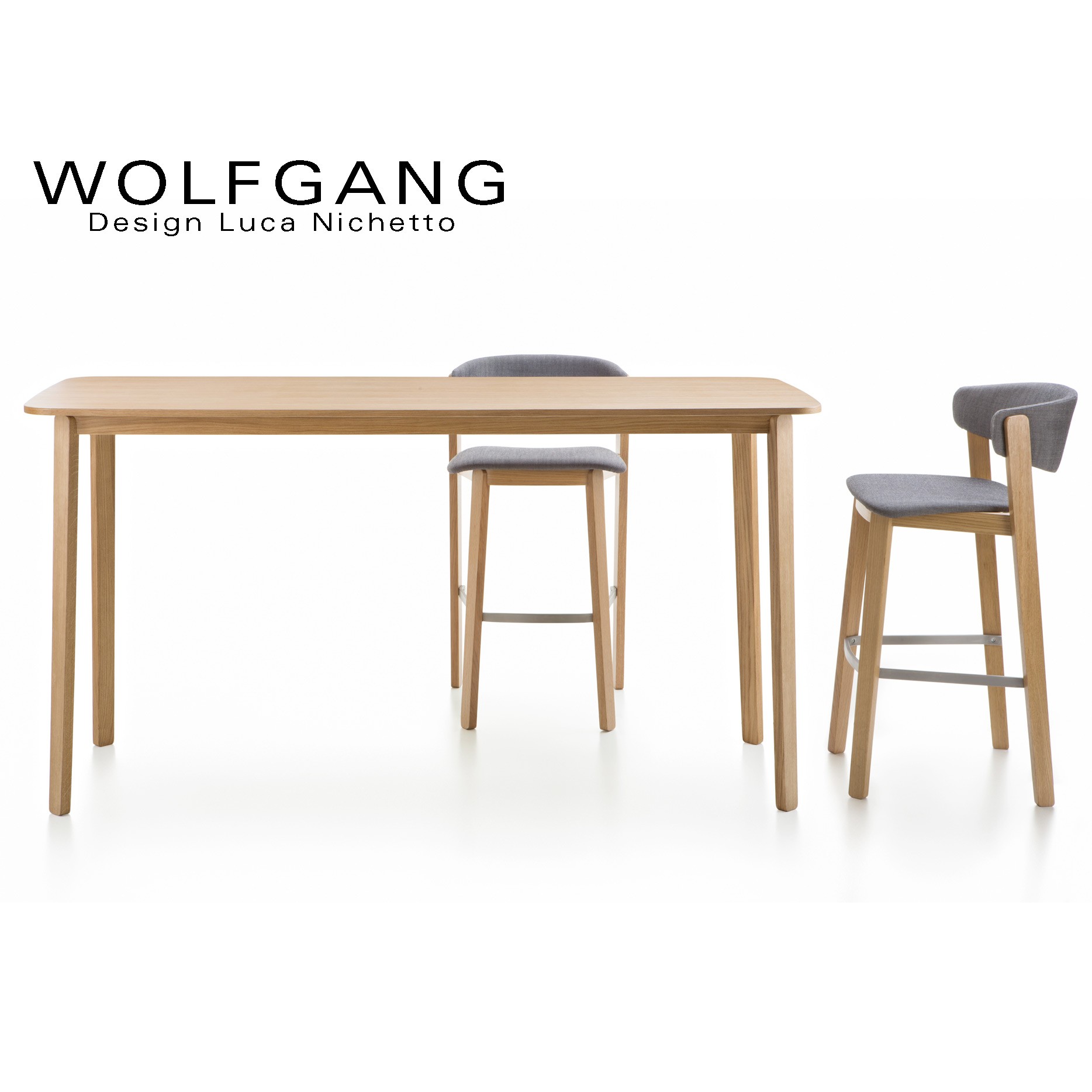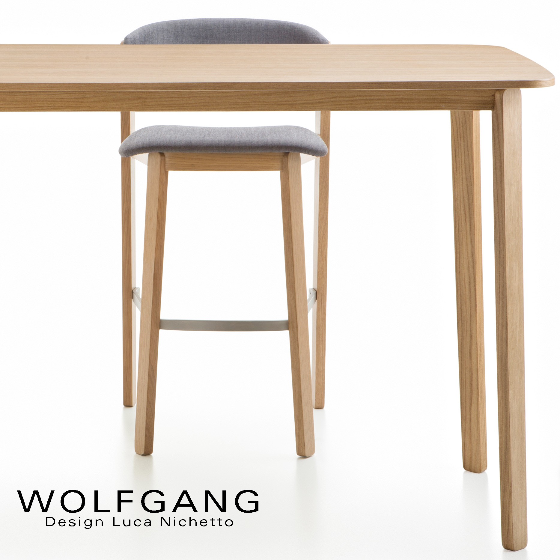 Normes européennesChaise design WOLFGANG en bois de chêne, vernis naturel. Assise garnie de mousse polyuréthane, habillage tissu gamme King-L-Kat du fabricant FIDIVI, 100% fibres de polyester, difficilement inflammable, ne peut être altérée ni par les lavages ni par l’usure. Ignifugé M1 pour la France. Piétement avec tampons de protection des sols. (Si quantité importante vos demandes à commandes@100chaises.fr).