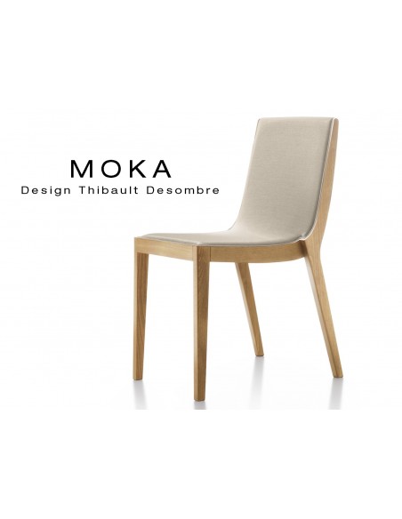 Chaise design MOKA en bois assise capitonnée tissu King-L, couleur crème.