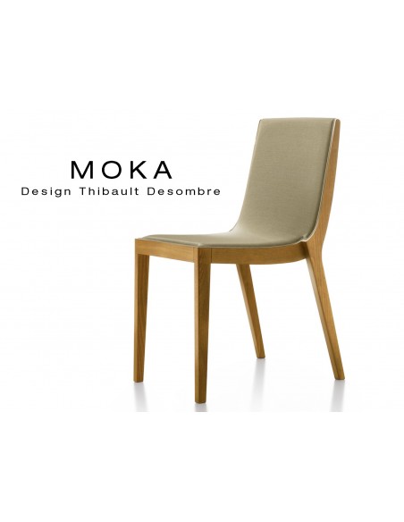 Palette vernis possible structure chaise design MOKA en bois assise capitonnée tissu King-L, vernis au choix.