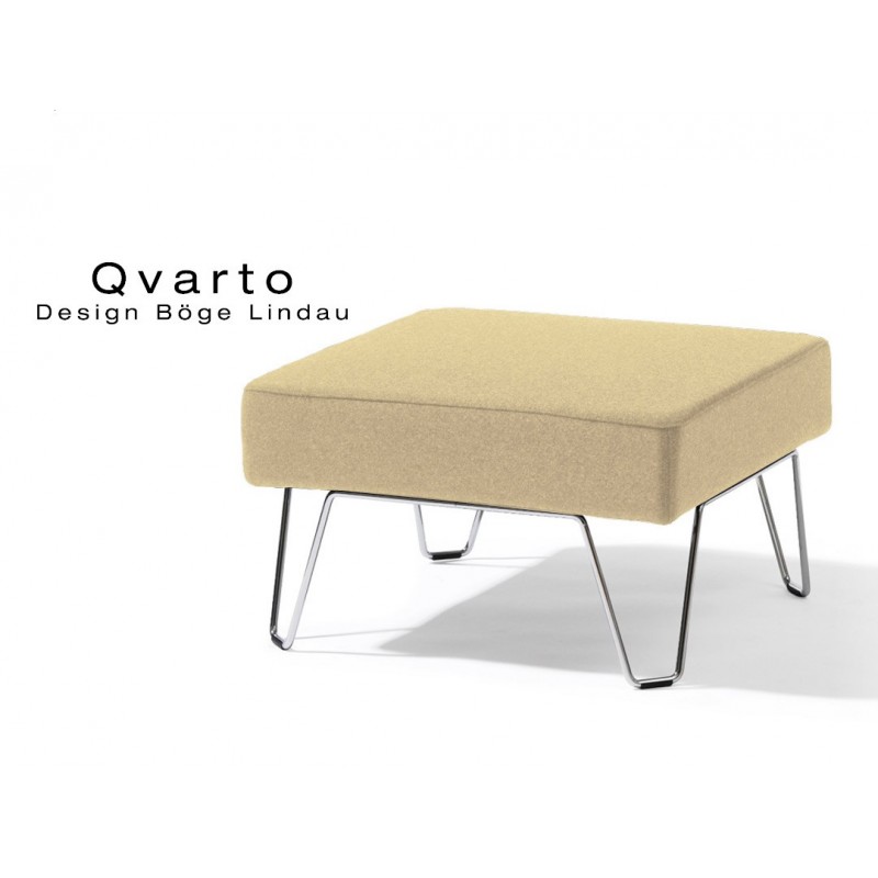 Module pour canapé ou repose-pieds pour salon ou salle d'attente design QVARTO footstool, piétement tube d'acier Ø13 mm. Finition acier chromé. Assise garnie de mousse polyuréthane. Habillage tissu synthétique gamme CAMIRA® tissu Xtrème-Plus, voir palette nuancier couleur.