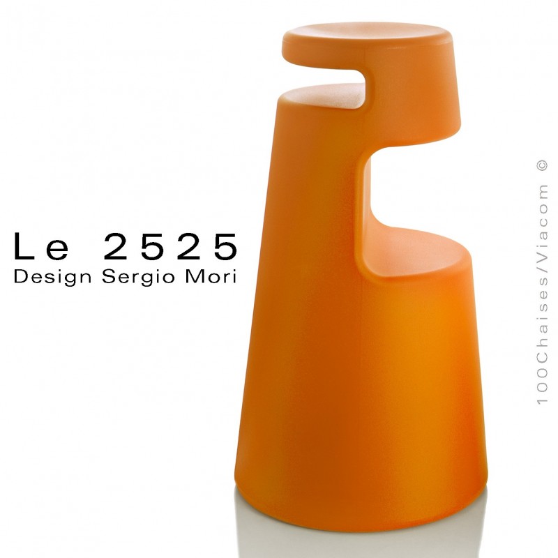 Tabouret design "Le 2525" coque plastique en polyéthylène, couleur orange.