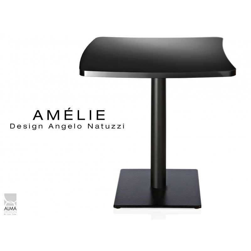 0 Panier / Vide Table pour café, restaurant AMÉLIE table carrée plateau fantaisie en résine 700x700 mm. Piétement en fonte 400x400 mm., finition peinture polyuréthane. Adapté pour une utilisation en extérieur, idéal pour les bars, restaurants, hôtels et les clubs. Avec tampons plastiques de protection des sols.