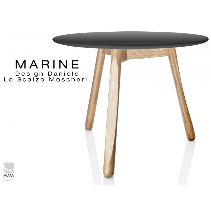 MARINE table ronde piétement 3 pieds finition naturel -Plateau noir.