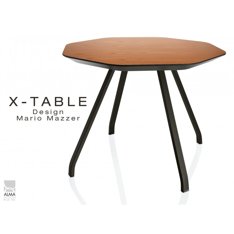 X-TABLE piétement acier, pour salon, hall et salle d'attente - Plateau finition noyer.
