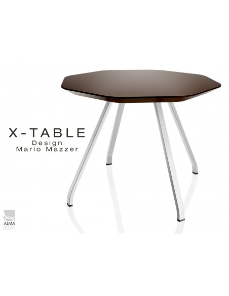 Table d'appoint X-TABLE COULEUR piétement acier blanc, plateau marron.