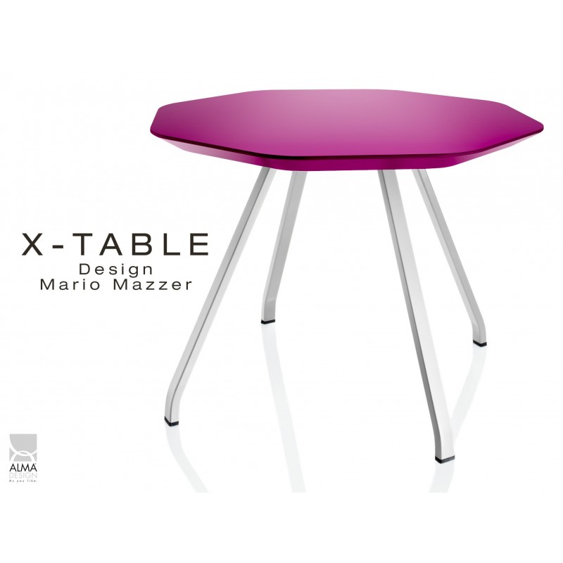 Table d'appoint X-TABLE COULEUR piétement acier, pour salon, hall et salle d'attente - Finition plateau peinture laquée.