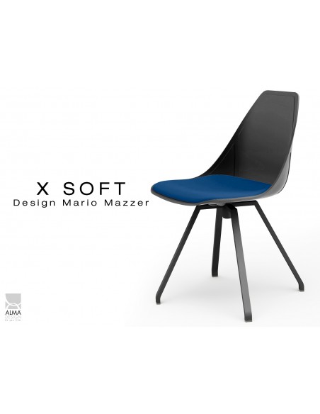 X-SOFT BLACK assise avec coussin Bleu nuit-TE27, piétement et coque noir.