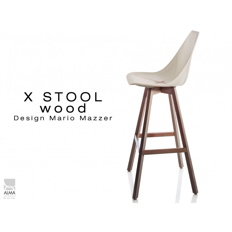 Tabouret de bar design X-STOOL Wood 75 - piétement bois noyer assise coque - Lot de 2 unités