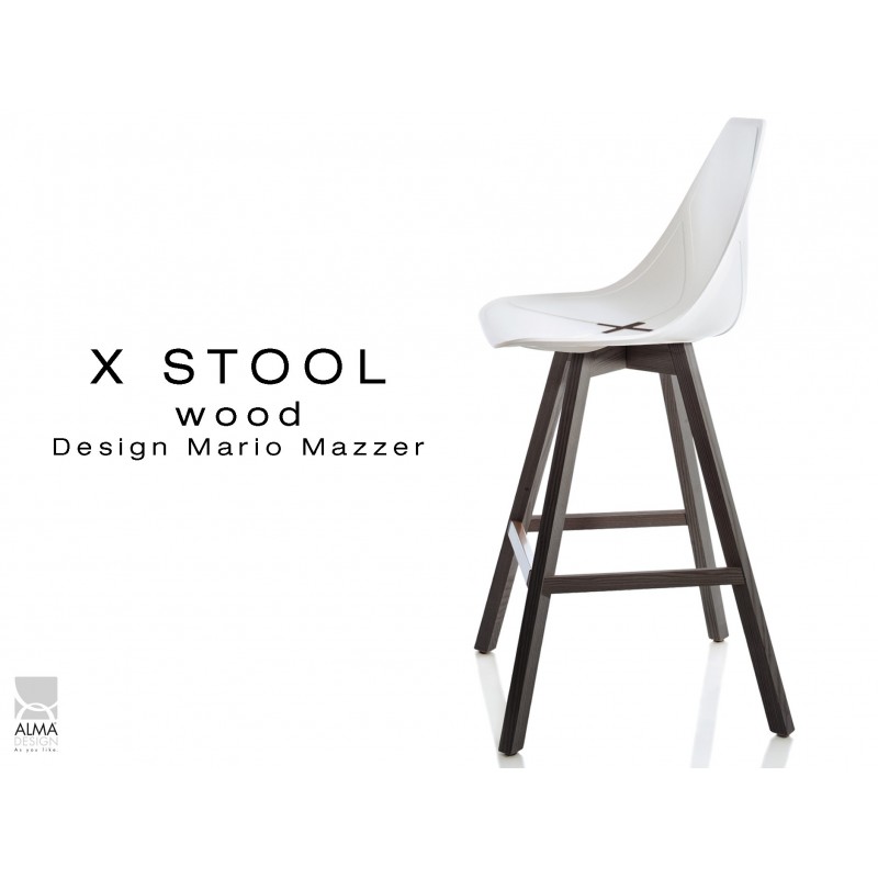 Tabouret X-STOOL Wood 65 - piétement bois gris fer assise coque - Lot de 2 unités