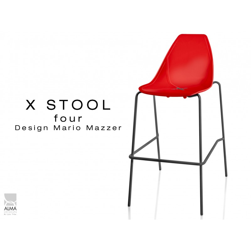 X-STOOL Four 75 - piétement noir assise coque rouge - lot de 2 tabourets