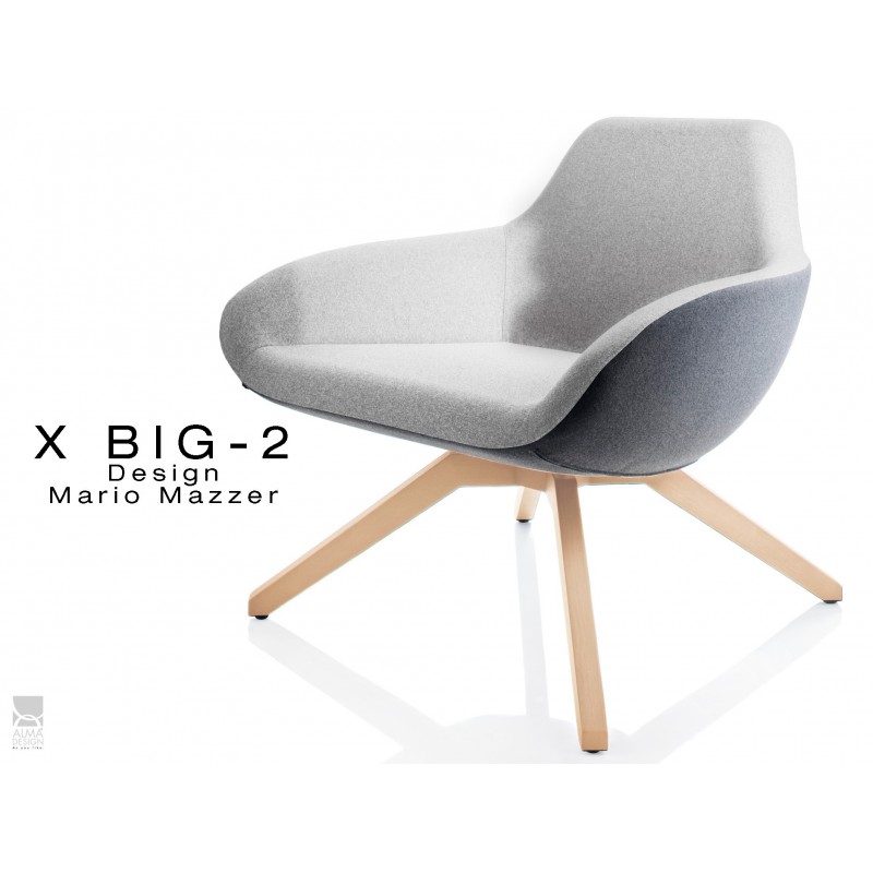Fauteuil lounge pour salon d'attente standing X BIG-2 piétement bois Frêne, assise garnie habillage tissu synthétique 2 tons