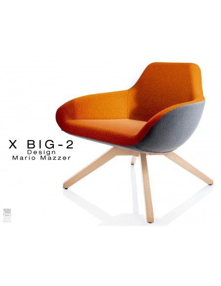 Fauteuil lounge pour salon d'attente standing X BIG-2 piétement bois Frêne, assise garnie habillage tissu synthétique 2 tons