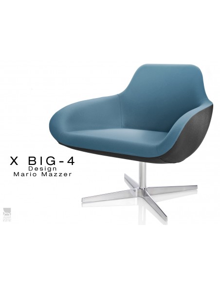 Fauteuil lounge pour salon d'attente standing X BIG-4, piétement central chromé, assise garnie habillage tissu 2 tons